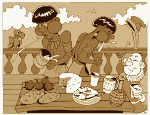 e bebidas oferecidas: pão, peixe cozido, bolo, mel, figos
