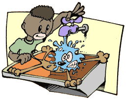 no tanque, no quintal ou mesmo no banheiro. Consulte seus pais.
