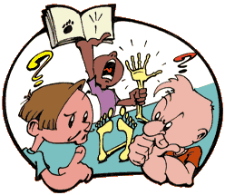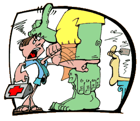 TEM ALGUMA COISA ERRADA! Na Idade Média, os médicos sabiam muito pouco sobre o corpo humano, e isso acontecia porque era proibido fazer dissecações (cortar o corpo para estudar a parte de dentro). Foi nas obras de Galeno que as escolas de medicina aprenderam anatomia. Mas Galeno também não dissecou corpos humanos, apenas porcos, cabras, macacos e outros bichos, e chegou à conclusão de que a anatomia humana seria semelhante à desses animais. Mas ele errou em muitas coisas.