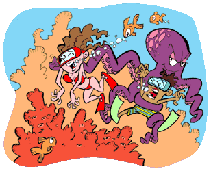 mergulho e pés de pato, pra nadar mais rápido e chegar mais longe.