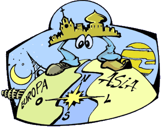 na Europa, outro na Ásia. O estreito de Bósforo, no meio